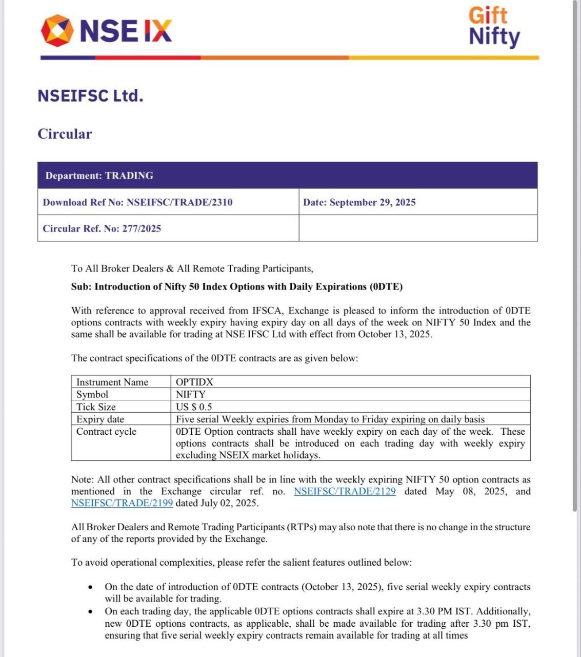 NSE IFSC is rolling out Daily Expiry Options ( 0DTE / Zero-Day-to-Expiry) on GIFT Nifty from October 13, 2025. 🎯 ఇది traders కోసం ఒక fresh, fast-paced trading opportunity—short-term moves పై play చేయడానికి ideal.